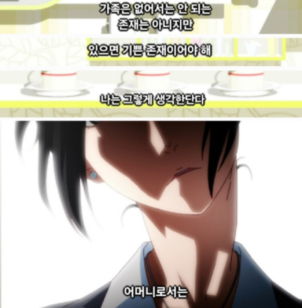 서글프다 이런 느낌을 받으면 그래도 멀쩡한 가정에서 자란 사람일 확률이 높음 기형적인 가정은 상상 이상으로 비틀린 상태고 그건 천륜이니 뭐니 그런 말을 꺼낼 여지도 없음