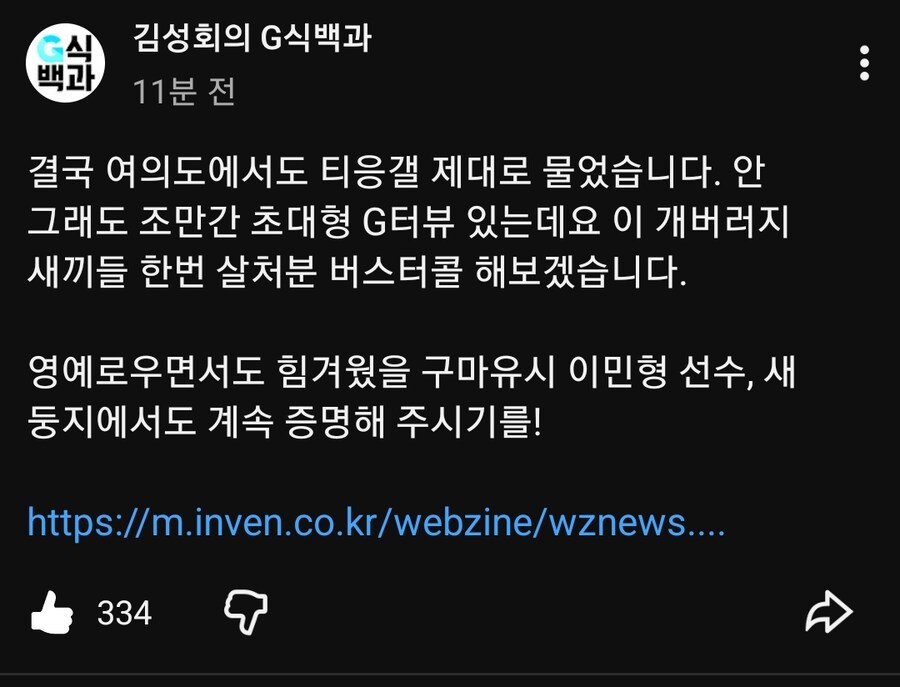 그리고 렉카라서 자극적인거 써야하는건 알겠는데 워딩이 진짜 요즘 도파민 원툴 자극성 발언들 섞여나오는거 신경 좀 썼으면 좋겠음 방금 이야기도 검열이 아니고 처벌 정도로 했으면 크게 불탈 일이 없는거구만 | 25.11.20 14:41 | | |