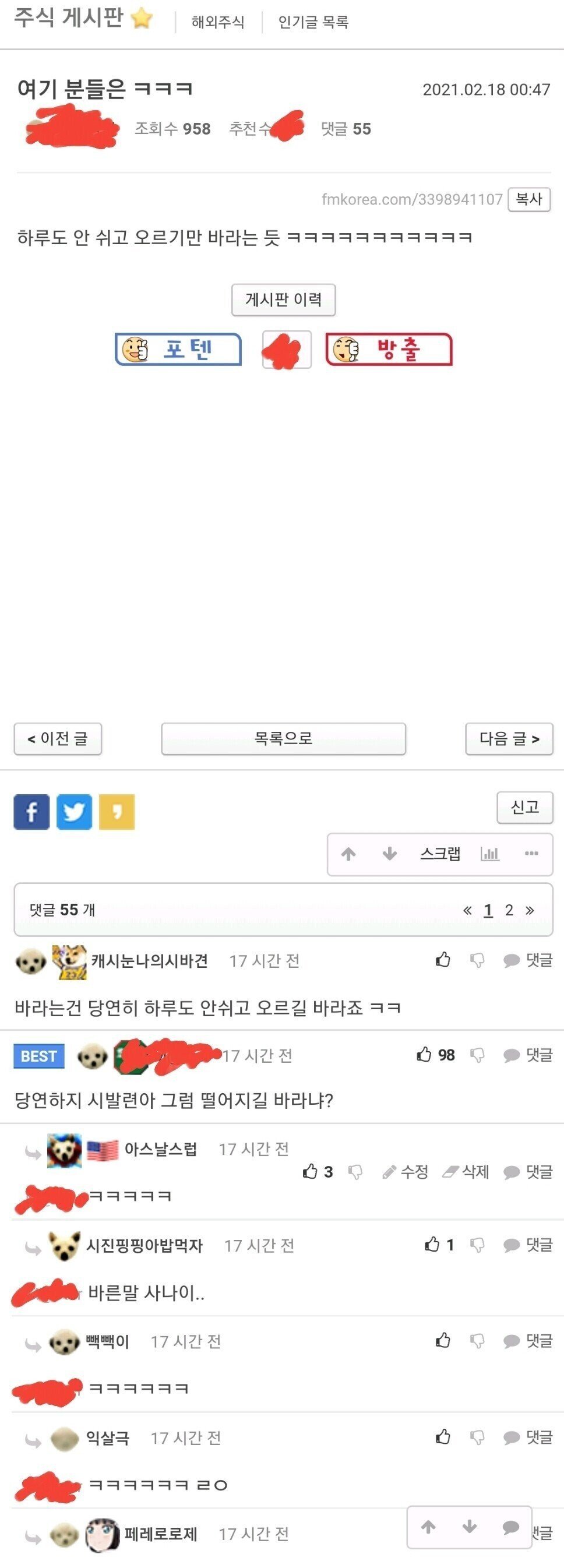 슬슬 허리쯤 온듯 ㄷㄷㄷ 커뮤에 조롱하는거 올라오는거 보니 ㅋㅋㅋ 고점은 수익률 자랑하며 노동의 가치 하락 운운하며 왜 코인 안하냐면서 조롱하는 글들 올라올 때