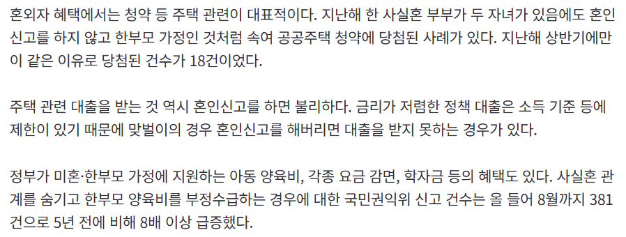 저거 심각한게 실제로 혼인신고 안하고 사는 부부들 많아진다더라