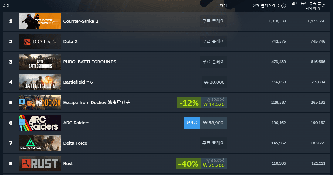글로벌 인기작들 동접도 이정돈데 내수 따까리가 팍씨