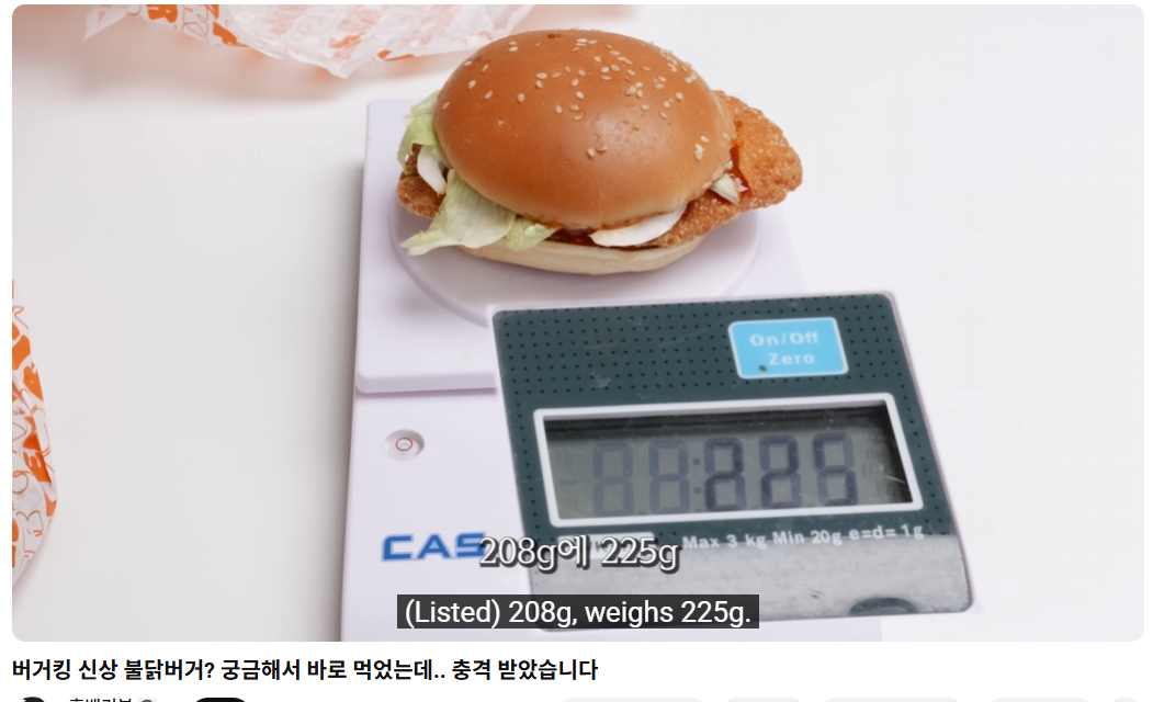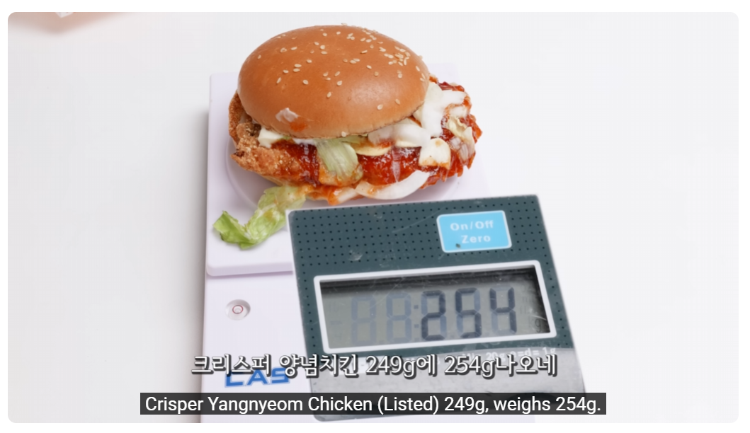 같은 유튜버가 5개 지점 테스트 해봤는데 1개지점 1개 메뉴 제외하고 나머지 전부 중량 미달