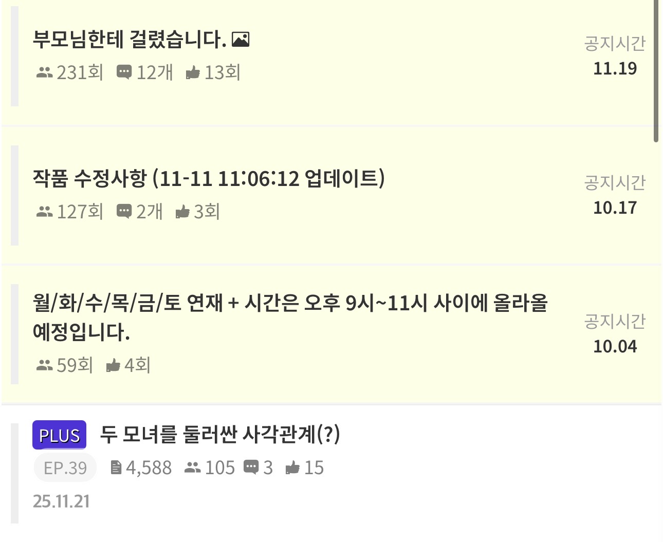 하필 어머니에게 근친물 쓰다 걸림... | 25.11.22 17:00 | | |