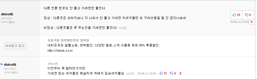 아무리 그래도 가세연인데...하던 사람들도 꽤 있었음ㅋㅋㅋㅋ 얼마나 억울했으면 가세연에 갔겠냐!! 하는 뇌파먹은 것들이 더 많았던게 문제지... | 25.11.22 17:46 | | |