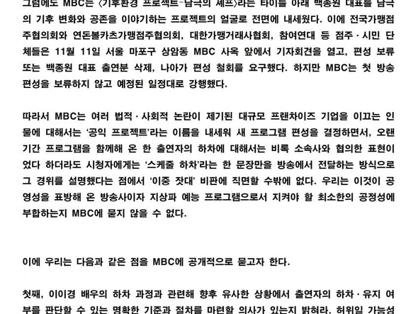 [정보] MBC의 불공정성 논란에 뿔난 놀면뭐하니 갤러리 입장문 [1]