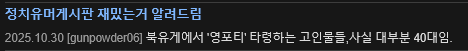 가세연 좉된다! 라는 글에는 신나게 베스트 올려주다가 갑자기 유게에서 안 보였으면 하는것도 웃기거든요 | 25.11.23 21:22 | | |
