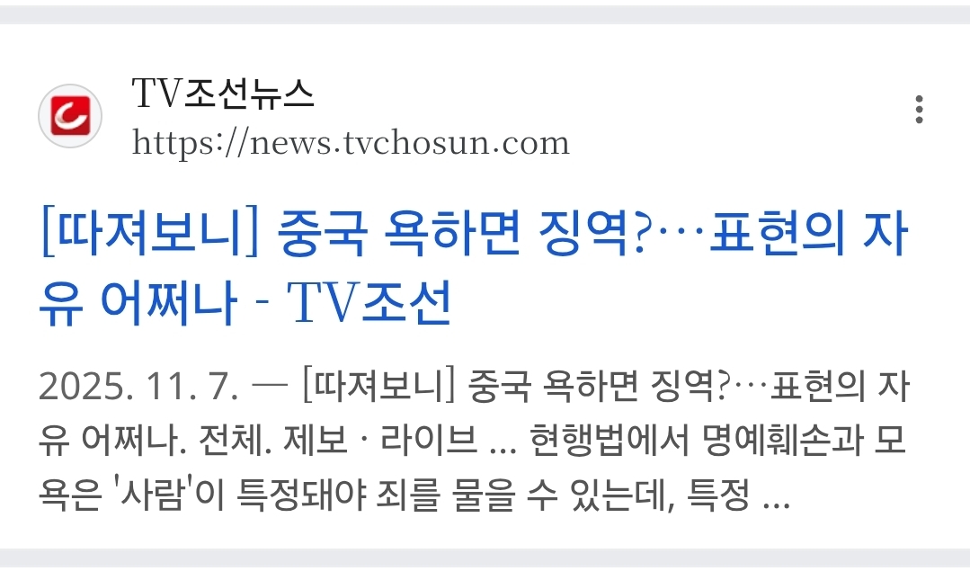 통과 안되게 막아야지 개인간 명예훼손도 아니고 특정집단 욕했다고 벌금이나 징역형 먹는건 말도 안되지 | 25.11.26 09:58 | | |