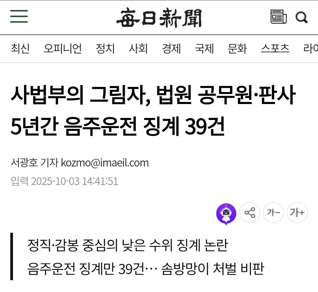 그놈의 비례의 원칙과 양형 논리를 왜 음주운전에 적용해서 판결하는지 모르겠음 ㄹㅇ | 25.11.27 00:09 | | |