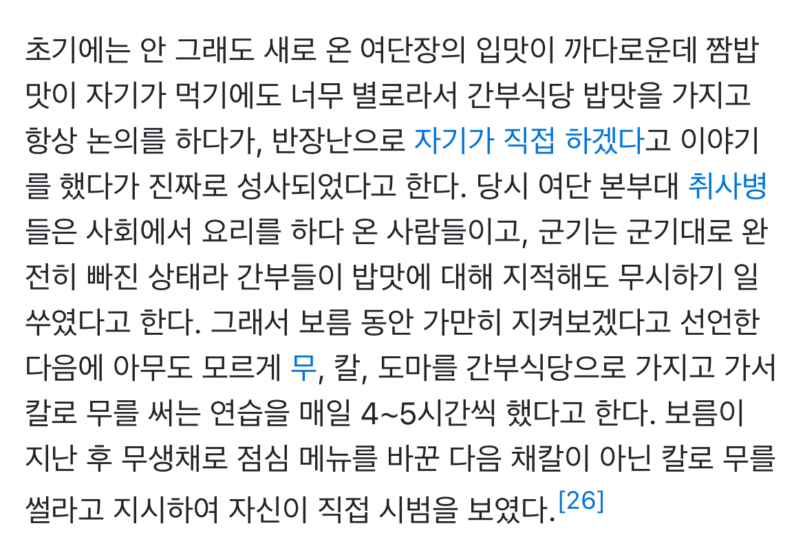 아 장교였어?? 그럼 식기 바꾼건 어느정도 진짜 했을 가능성은 있네. 보름동안 연습한다고 식재료 빼돌린건 어떻게 된건지 궁금하네 | 25.11.27 08:18 | | |