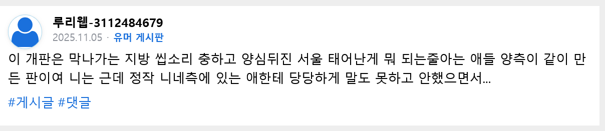 게시글을 그렇게 많이 써놓고...? | 25.11.27 10:32 | | |
