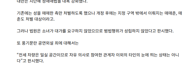 뭐... 남들눈에안보임+본인들이 원함+매춘아님 처벌할 껀덕지가없긴하네ㅋㅋㅋㅋㅋ