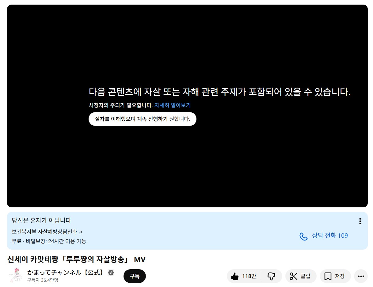 자살 관련 혹은 암울한거 관련으로 구글이나 유튭에 검색하면 상담 전화 번호 화면에 뜬다
