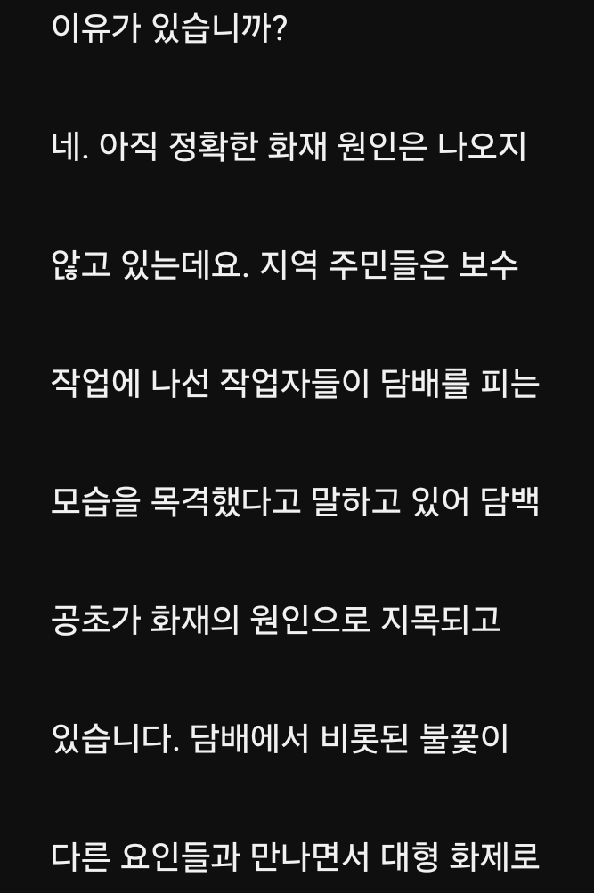 담배썰은 아직 확정된거아니라던데 담배실화 워낙 의심의 얼룩이라