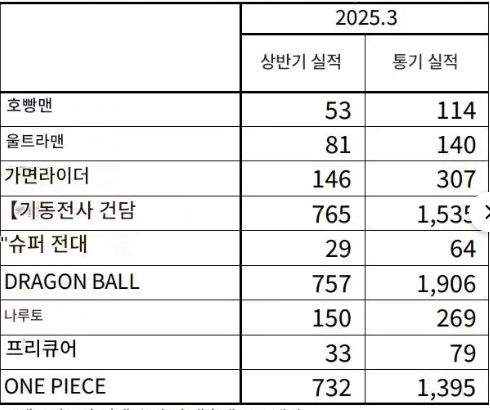 25년 3월이면 건담은 지쿠악스 나오기 전인데 뭘로 저렇게 실적이 나온거지? ㄷㄷㄷ 3이 3월이 아니라 3분기인건가? | 25.11.28 19:38 | | |