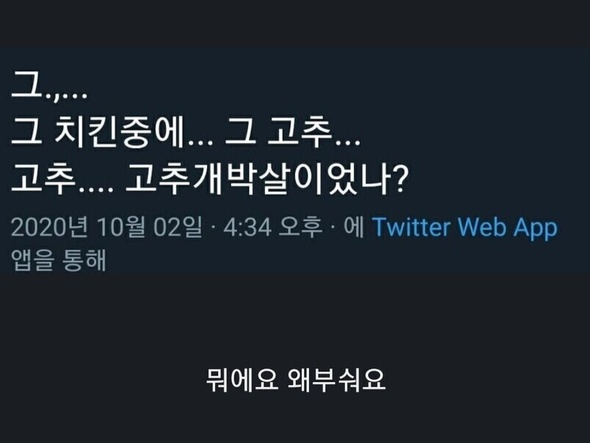 예 고추바사삭 입니다 님 고추가 바사삭 되었다구요