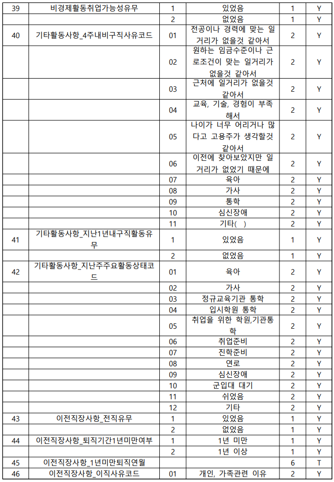 위에 짤 보면 40(전공이나 경력에~/원하는 임금 수준이나~)에 표기하면 구직 포기자로 들어갈 거 같은데 그거 체크 안 하고 42번으로 가서 쉬었음에 표기한 거란 뜻 아닐까 | 25.11.29 16:46 | | |