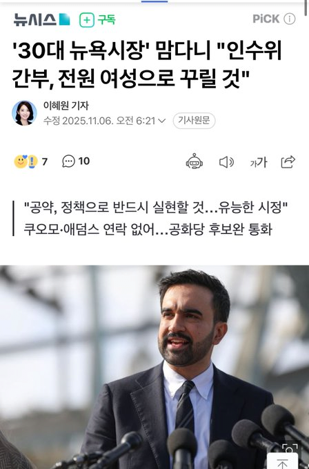 맘다니 좀 걱정되는긴 하는데 확실한건 얘는 미국태어났으면 무조건 마가였긴 하겠다 | 25.11.30 12:31 | | |