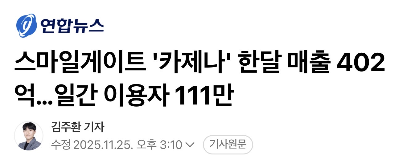 그러게, 카제나는 400억에 111만 보상 뿌려야 하는거 아니냐 | 25.11.30 13:14 | | |