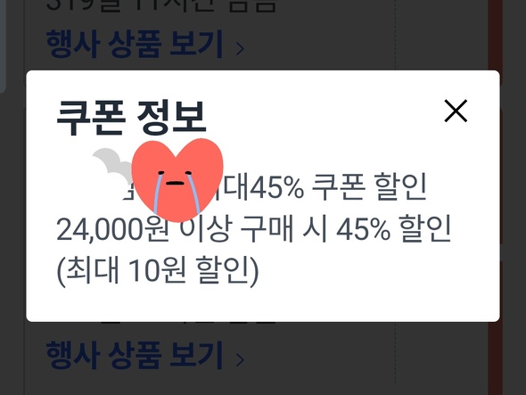 저런 2만 4천원 이상 안써서 10원 할인을 못받았다네요