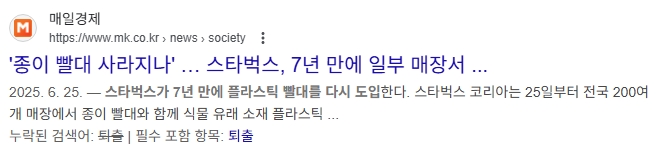 지금은 스벅도 일반 플라스틱 빨대로 바뀜, 항의 많이 들어온듯.. | 25.11.30 18:34 | | |