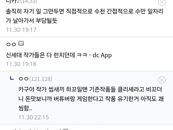 보통은 억대 수입 들어오면 눈 돌아가서 그만둘 것 같긴 함 | 25.11.30 23:40 | | |