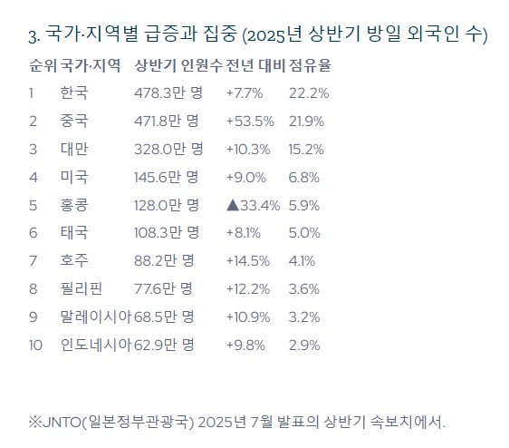 중국인 관광객이 없다고? 일본 관광객 1위인 한국이? 저기서 한국인은 거의 중국인 아닌가. 우리나라에서 제주도에 중국인으로 득실거린다고 혐오하듯 말야 | 25.12.01 00:15 | | |