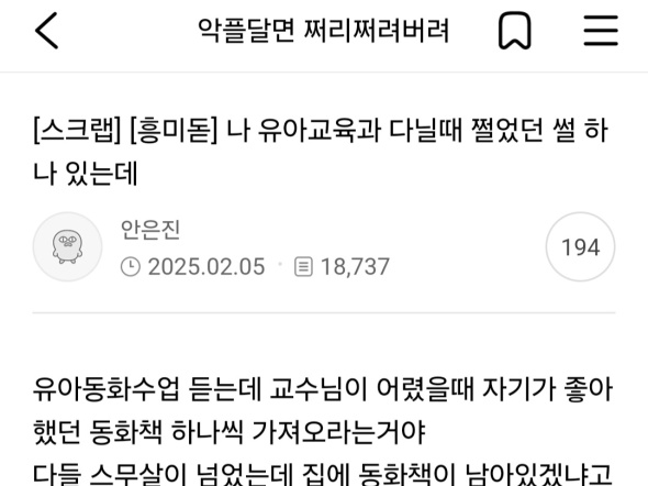 자 교수님이 쓰던 동화책 낭독시간이 있겠습니다