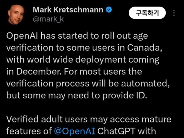 GPT 기능에 성인용 기능을 포함한다는데 단순히 LLM에만 적용한다는 건지 모르겠네 그런 거면 그냥 그록 무료랑 똑같은데 | 25.12.01 15:34 | | |