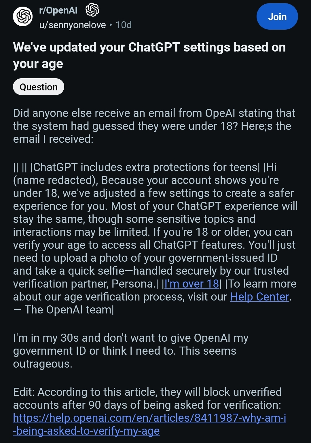 저 x계정, 스팀에 Ai적용된거 라는 문구 빼달라고 했다가 ㅈㄲ 소리먹은 그 사람? 아닌가? 팔로워도 몇 안되는데다 혹시나싶어 검색해보니 반대로, 청소년이 유해한 것을 접할까봐 신원확인을 요구하는거로 보인다는 글들이 있는데, 그걸 반대로 해석한거 같은데?
