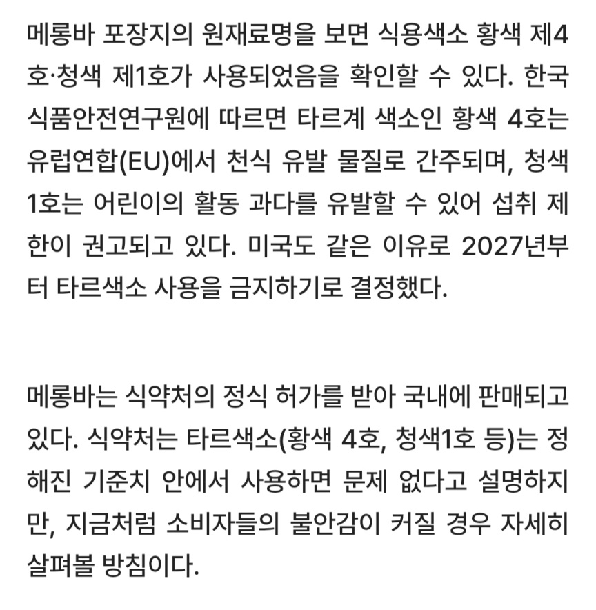 먹을순 있는데 과다섭치 주의 색소래 타르계 색소 | 25.12.01 18:04 | | |