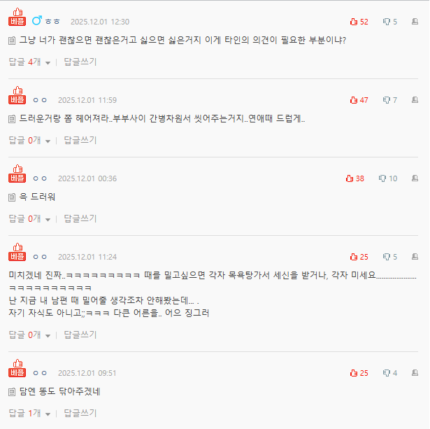 더럽다 저런건 좀 각자해라...가 베플 | 25.12.02 00:15 | | |