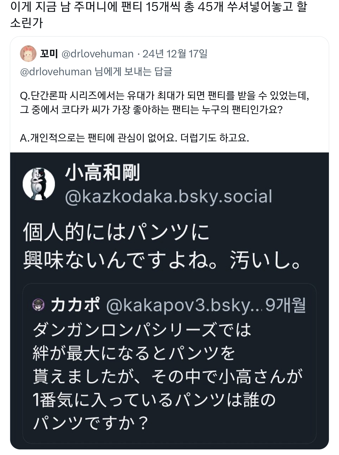 단간 3 내용 한창나올때쯤에 곁눈질로 봤는데 '얘네 팬이랑 기싸움하나...?'싶은 느낌이 없잖아 있더만 | 25.12.02 02:08 | | |