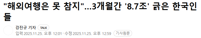 여행인기국가에 범죄율 기사 쓰면서 여행가지말라고 선동할게 뻔히 보인다 ㅋㅋㅋㅋㅋㅋ | 25.12.02 09:45 | | |