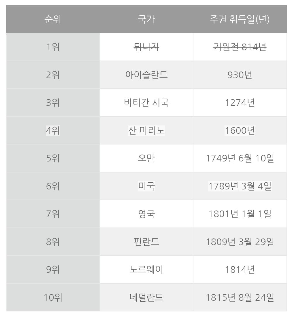기준 잡기 어렵고 제각각이라 대충 재미로보면 현정부와 이어지는 주권 취득 기준으로 이렇다고함. | 25.12.02 15:13 | | |
