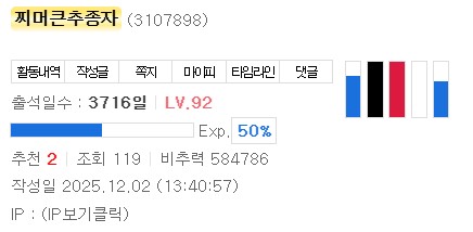 근데 그 계속 보이는게 몇년째면 좀 | 25.12.03 11:29 | | |