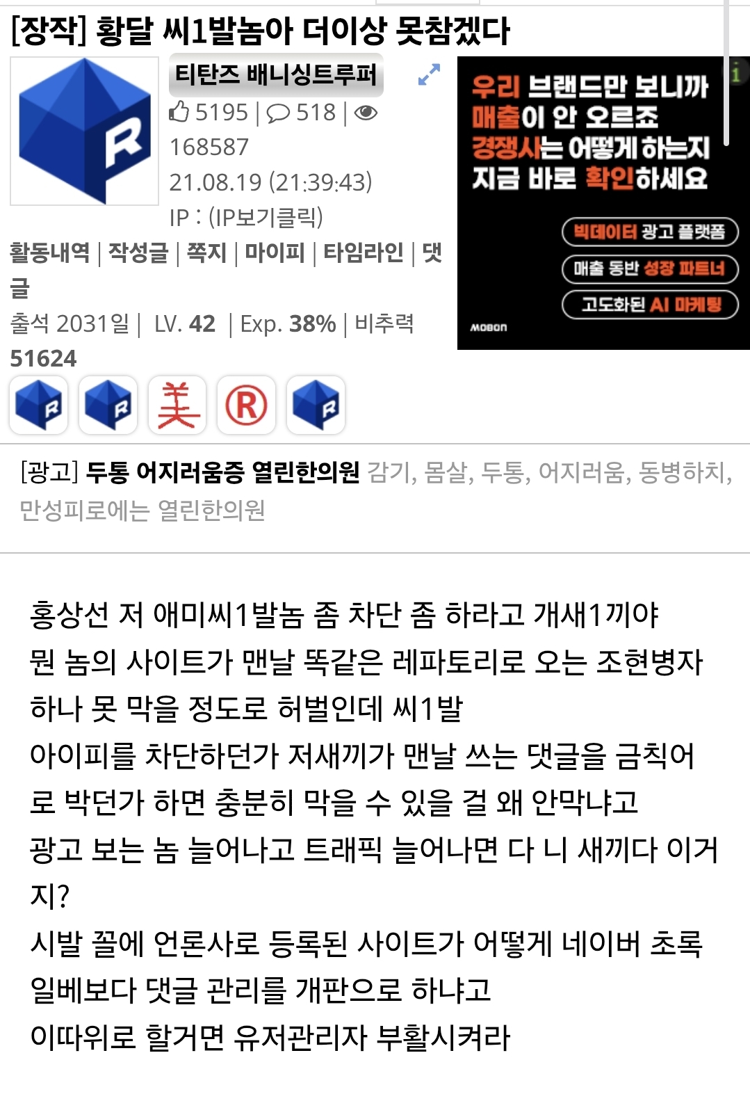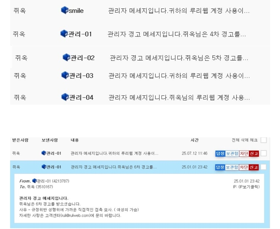 누가봐도 게시글 규정 위반인 정치인 이름 나와있는 댓글도 3일째 멀쩡하다는 저격글 올라온지가 며칠 안됨 내가 신고도 넣었으니 진인환씨가 기록 뒤져보면 나오실것이니 잘아실거임 나도 진인환씨가 말한 유저들간의 자존심싸움 그런 사소한것에 복잡하게 만드는 그런 글 사건들은 관심없고 그런걸 잘 처리해달란게 아님 진짜 규정을 위반한것들 탁탁 잘 쳐내고 누가 봐도 혐오물 게시물 누가봐도 공지 위반 이것들을 제대로 쳐내라 이거임 진인환씨도 진인환씨 나름의 고충이 있고 유저들도 모르는점이 있다는건 당연한 말이지만 그렇다고 해서 유저들의 이 외침이 괜히 생긴것도 아니고 유저들이 바보도 아님 얼마나 루리웹 관리가 답답하면 이런 레전드 장작글까지 탄생했겠음. | 25.12.03 11:49 | | |