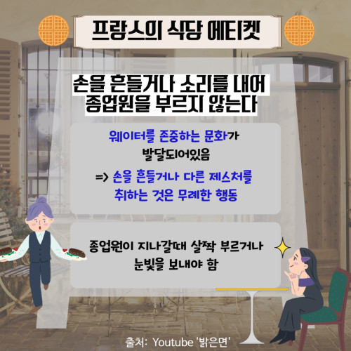 https://blog.naver.com/mofakr/223108543970 외교부에서도 인정하는 '손님이 간절히 바래야 종업원님이 강림하는' 병X같은 프랑스 문화. ㅋㅋㅋ 돈 내고 뭔 푸대접인지... 심지어 쟤네는 저걸로 '고상하게', 욕 한마디 없이 주문 안 받고 음식 안 내주는 거로 인종차별도 함. | 25.12.03 16:53 | | |