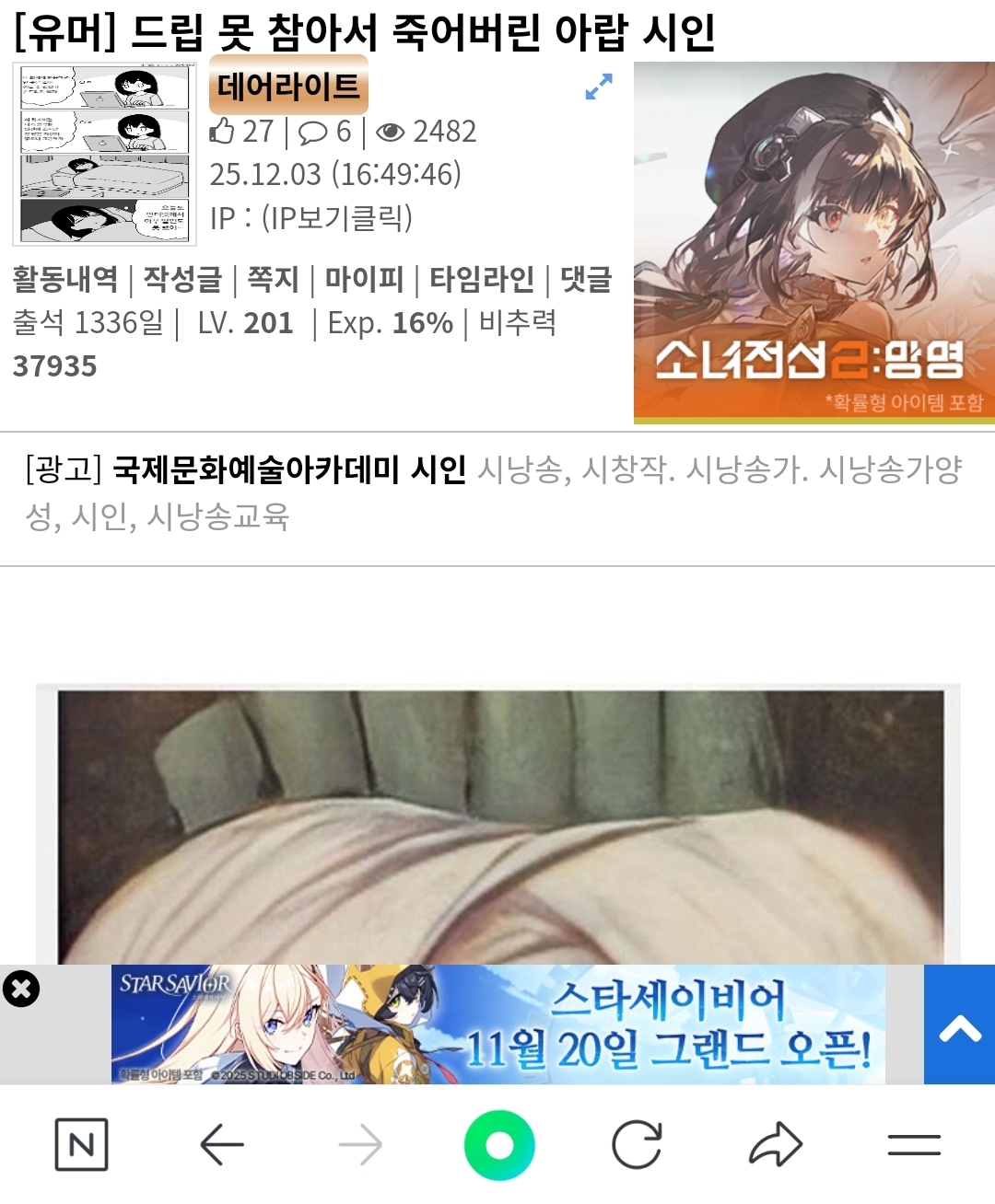 | 12688546 | "답하라, 유게이" (11) | -ZON- | 20 | 2105 | 25.12.10 |
