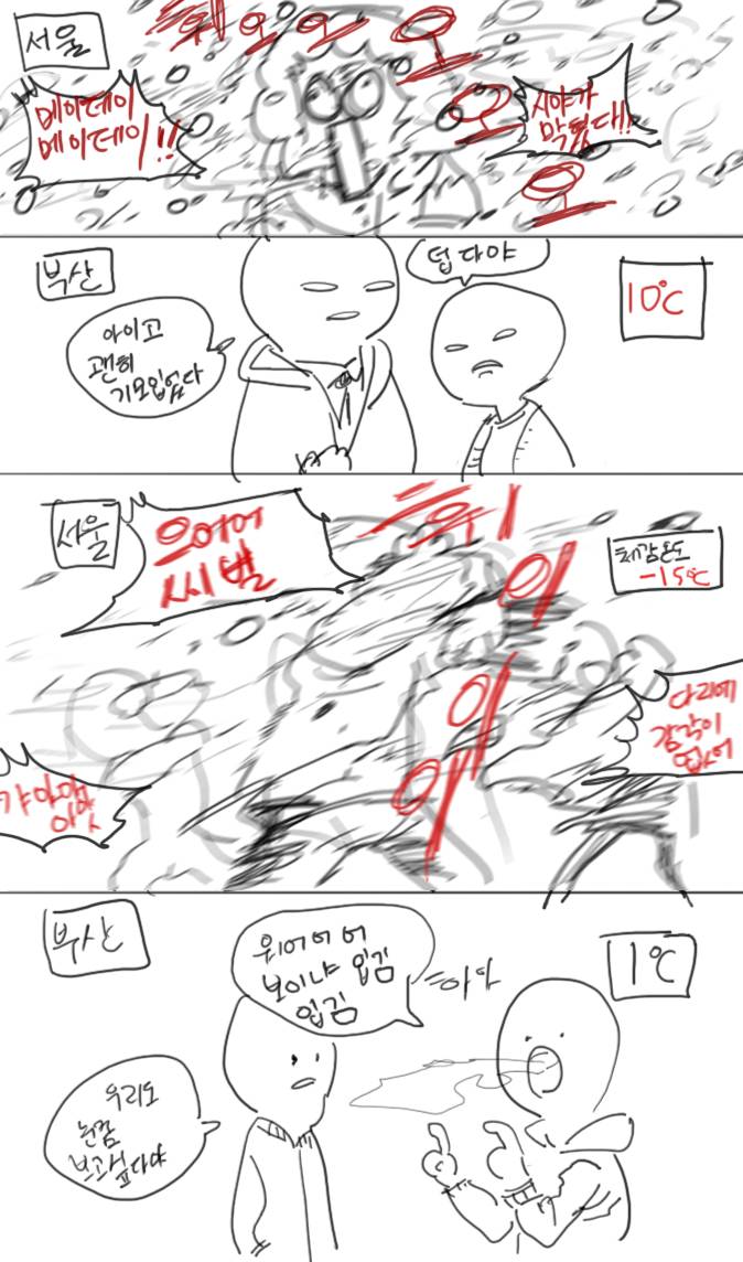 서울은 그냥 엄청 기온 낮은 칼바람이라 그.. 거기서 거기임. 그것보다 더 한 건 철원 겨울