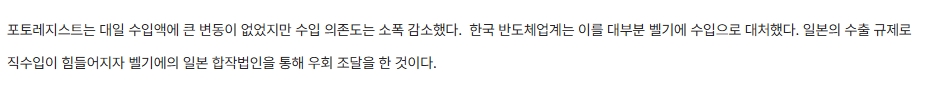 이걸 수출 중단한다는건 중국이 희토류 수출금지 한다는거랑 별 차이가 없을정도임