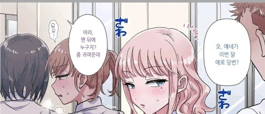 맨 뒤는 갈색머리 남자놈인데....? 게이게이야