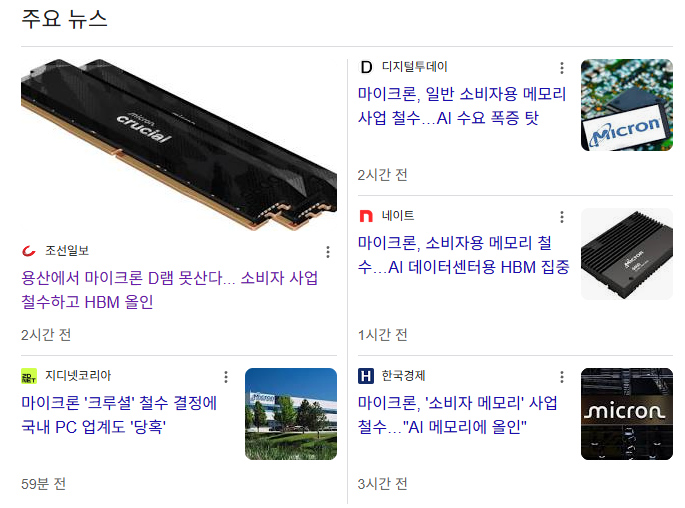 마이크론 아니어도 이미 지금 대부분의 메모리 생산 기업들도 생산 즉시 트럭타고 다른 기업 창고로 배송하고 있음 우리가 사는건 그런꼴 나기 전에 소매업체로 넘어간 소수의 물량이고.. 비싸질 일만 남음 ㅋㅋ