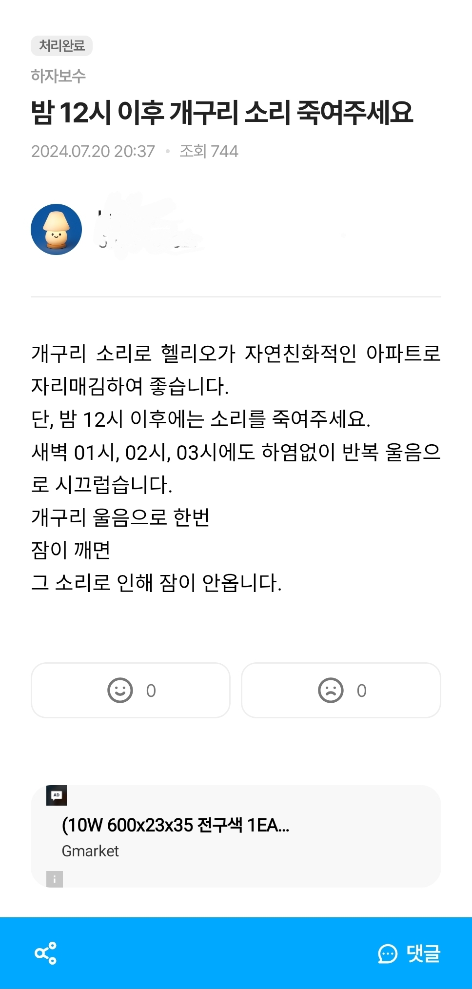 내까지 아니라도 근처에 어디 있으면 개구리 합창소음 상당함 | 25.12.04 12:55 | | |
