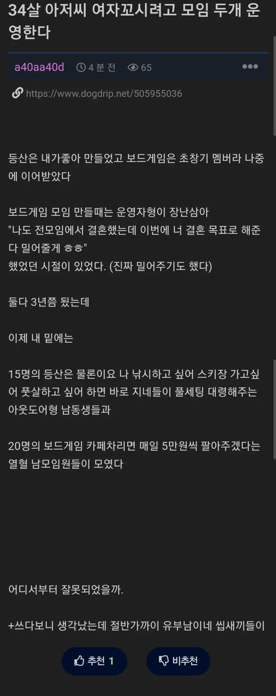 여친 사귈려고 모임까지 운용하는 경우 생기는일