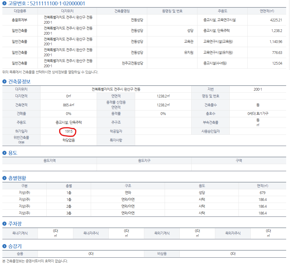 준공은 아니고 허가일자지만 백년이 넘었네