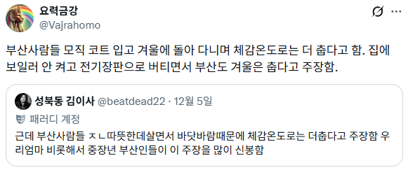 몸뚱아리가 적응할 시간을 줘야된다 이말이야 ㅋㅋㅋ 영하 40도, 영상 40도인 곳에서도 인간은 살고 있으니 ㅋㅋㅋ | 25.12.06 11:51 | | |