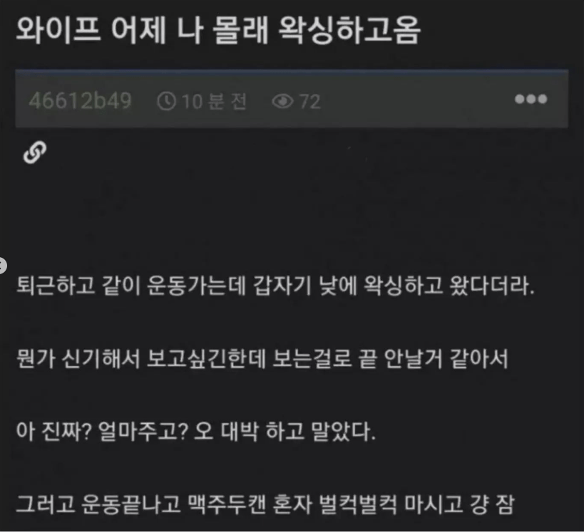 남편:날이 좋아서,날이 좋지 않아서,날이 적당해서 운동 조지러.., | 25.12.06 12:39 | | |