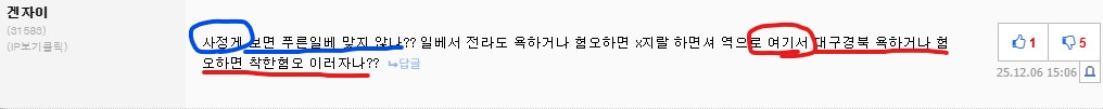 미개한 푸른일1베의 ㅂ신들을 깨몽!하시겠대 | 25.12.06 15:01 | | |