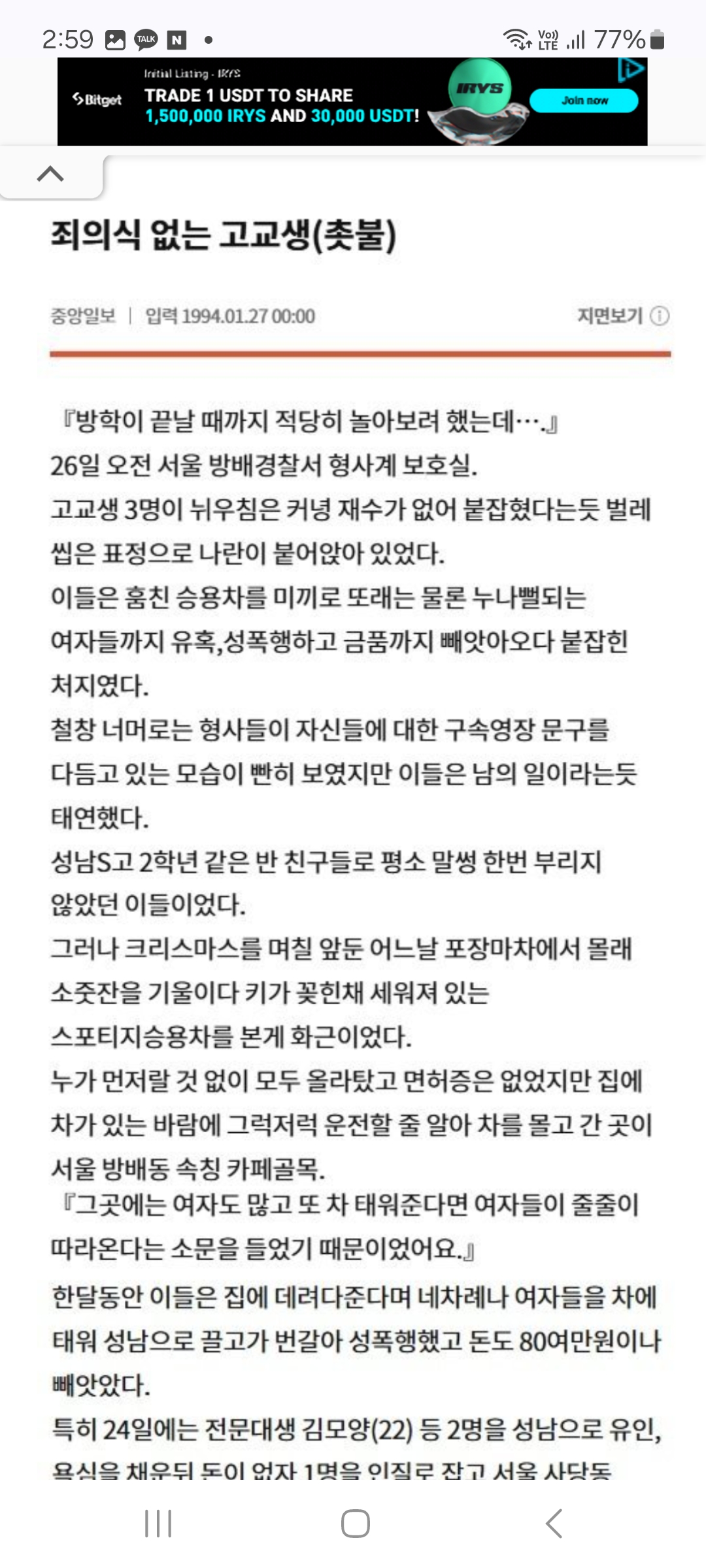 한번취기도 아니고 재범 하려다가 잠들어서 잡힘 94년도 중앙일보 기사 | 25.12.06 15:24 | | |