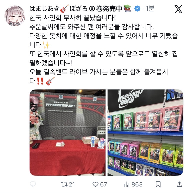 | 12671971 | 한국사인회 온 봇치 작가 근황.jpg (3) | 쿠르스와로 | 70 | 12722 | 25.12.06 |